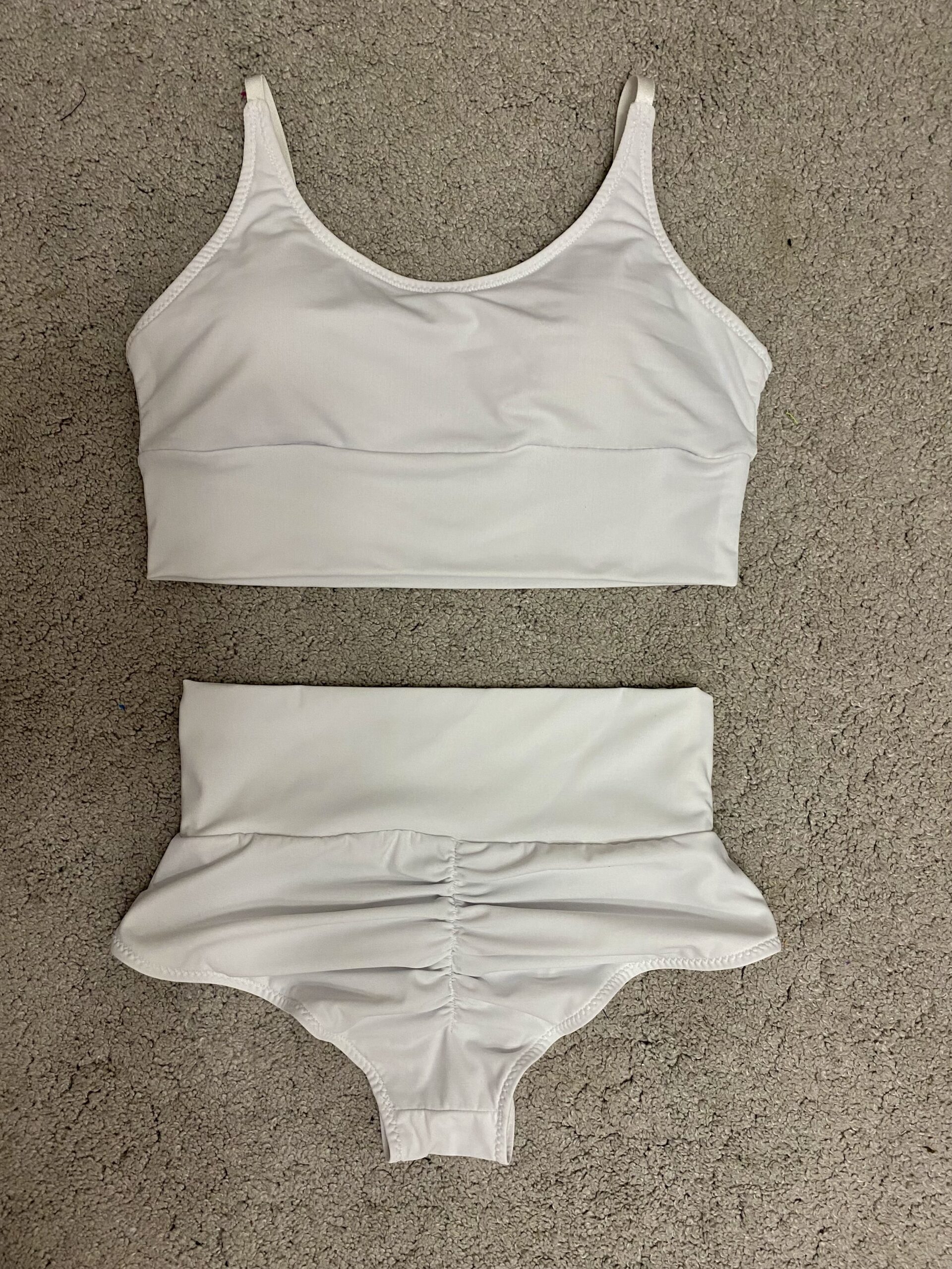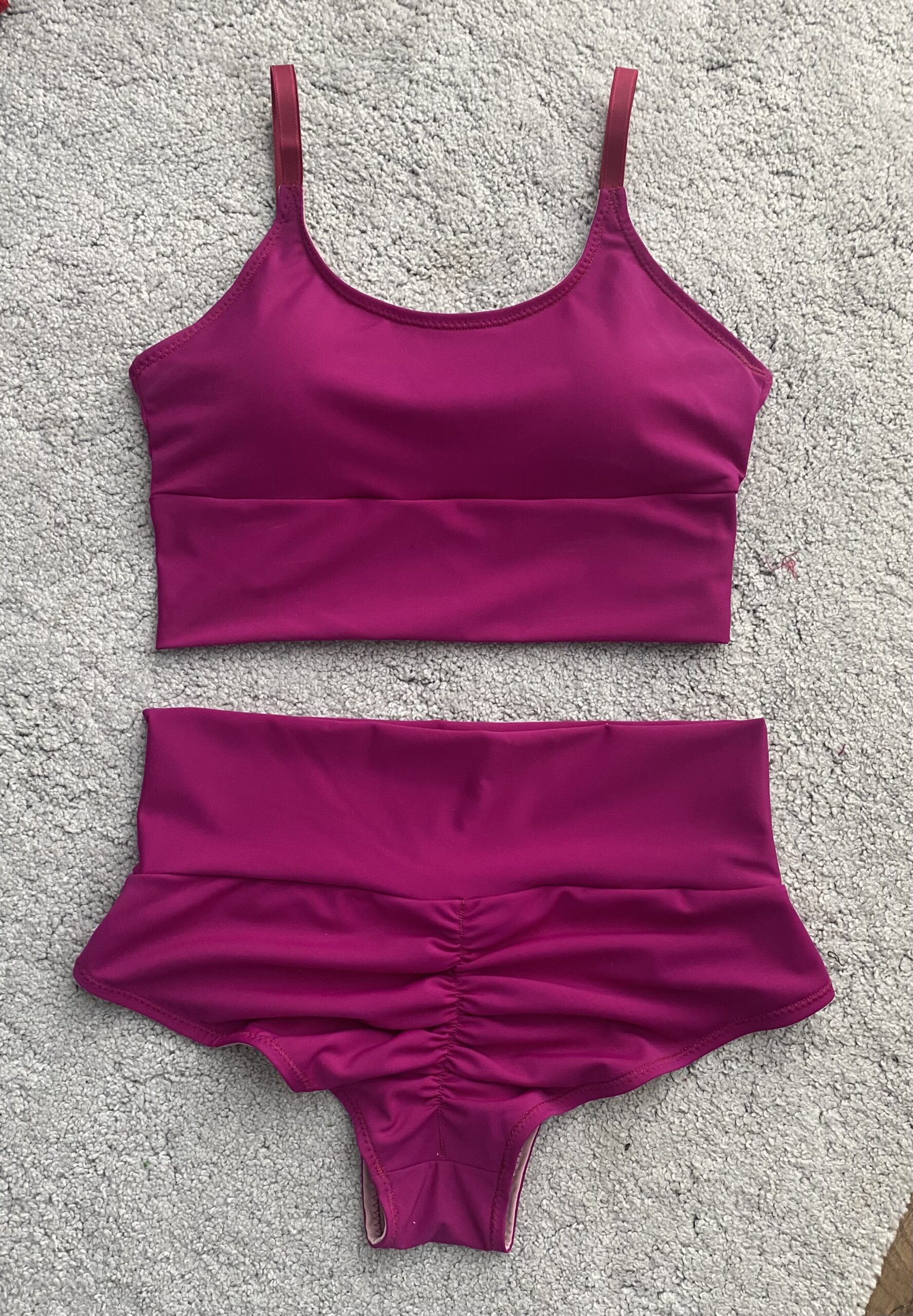 Top z regulowanymi ramiączkami, posiada wyjmowane wkładki. Szorty z marszczeniem i wysokim pasem modelującym. Prać ręcznie w letniej wodzie.