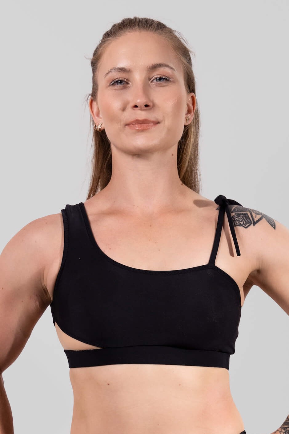 Model z dodatkiem siatki, top na jedno ramię z odwiązywaną ozdobna kokardką. Top posiada wyjmowane wkładki. Prać ręcznie w letniej wodzie.